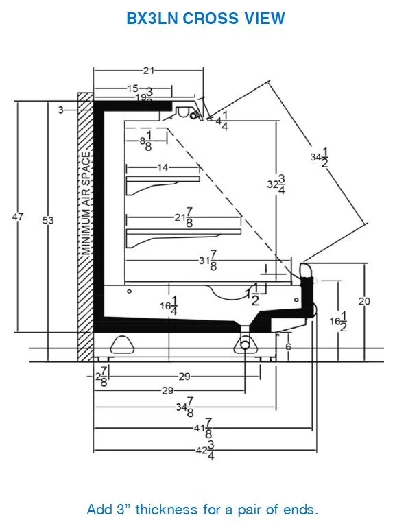 The Kysor Warren BX series is a medium-temperature multi-deck display case purpose-built for retailers who need a versatile, high-performance open case that can flex across multiple department applications without compromise. The BX3LN is the sole model in this offering — a medium-temperature case that is perfect for a wide range of merchandising options including bakery, cheese, deli, prepared meals, and produce, making it one of the most category-versatile cases in the Kysor Warren lineup. Two-position shelf brackets and 1-inch increments for shelf positioning provide the ultimate flexibility for merchandise of any type, while LED lighting with angle-adjustable brackets allows for precise illumination of the product regardless of what's on the shelf. A thermoformed plastic tub creates a leak-proof bathtub design ensuring liquids never reach the merchandising floor, and programmable high-efficiency EC motors reduce the number of replacement parts to keep maintenance simple and downtime minimal over the life of the case. With 20 standard and 90 premium color options available, the BX3LN can be personalized to complement virtually any store aesthetic — making it a flexible, energy-efficient, and distinctly configurable solution for any retailer looking to unify fresh department merchandising under a single, proven case platform.