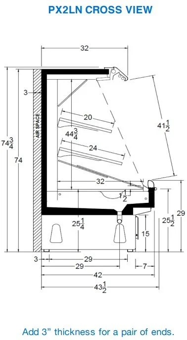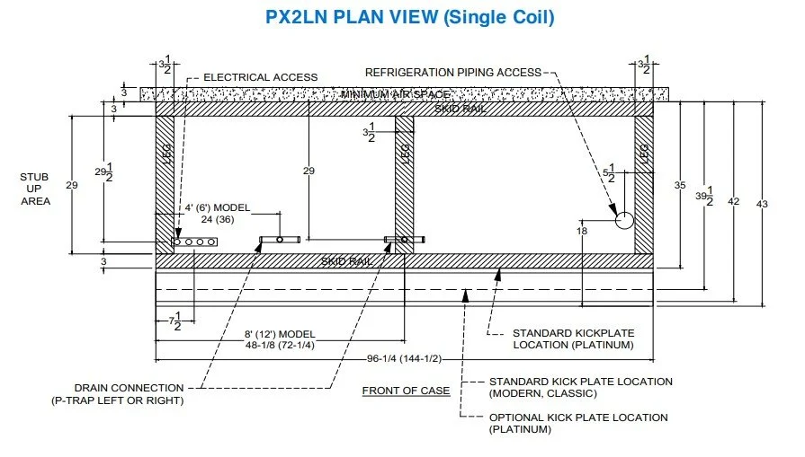 The Kysor Warren PX2LN and PX2XN are medium-temperature banquet display cases from the Stratus line, purpose-engineered for the produce department — and equally well-suited for cheese merchandising. Both models are designed specifically for bulk produce and are commonly fitted with accessories for washout and misting, making them a natural fit for any fresh department where maintaining product hydration and appearance is a priority. The two models differ in front height, with the PX2LN offering a low-front profile and larger throat opening. The PX series features a discharge air temperature of 31°F, off-cycle defrost, and is available in 4-, 6-, 8-, and 12-foot sections, scaling up to 41.64 square feet of total display area, ensuring even high-volume produce departments can be fully accommodated. Both models are DOE 2017 compliant and carry certifications from AHRI, NSF, UL, and the U.S. Department of Energy, affirming their commitment to food safety and energy responsibility. True to Kysor Warren's design philosophy, these cases are built with reliability, efficiency, and labor savings at the forefront, ensuring a long and sustainable case life — qualities that resonate especially in high-turnover departments like fresh produce where uptime and consistent temperature performance directly impact both product quality and profitability.