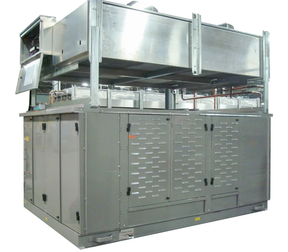 The DSS and its updated DSSII variant are Kysor Warren's vertical-format distributed refrigeration systems, designed to be placed close to the refrigeration loads they serve — behind interior store walls, in back hallways, on mezzanines, or in retrofit applications where a traditional machine room is not available or practical. By locating the system near the cases rather than in a centralized machine room, the DSS reduces refrigerant line runs dramatically, cutting total refrigerant charge by up to 70% compared to a traditional centralized rack system. That reduction in refrigerant charge translates directly into lower leak potential, reduced regulatory compliance burden, and lower total cost of refrigerant over the life of the system. The DSSII incorporates a 35% reduction in brazed joints compared to previous models, which further reduces leak risk and simplifies field installation. The system supports up to six compressors across two stacked levels, accommodates both medium and low temperature suction groups, and features hinged front doors and sliding side doors for easy access to all serviceable components. For retailers expanding an existing store, remodeling, or looking to eliminate the machine room footprint entirely, the DSS and DSSII deliver distributed refrigeration performance in a compact, accessible, field-proven package.